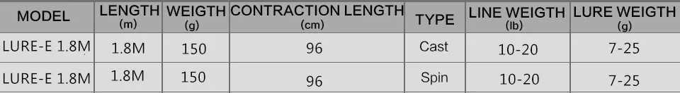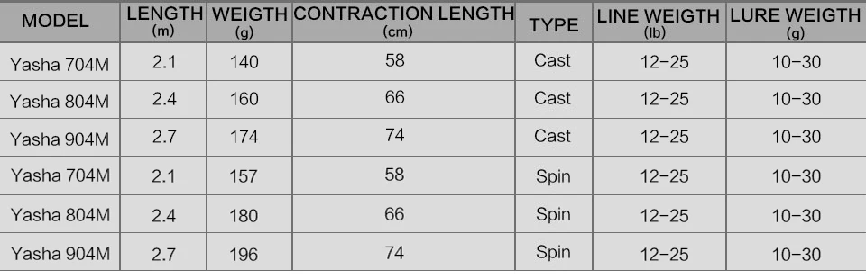 Вес спиннинга – 157 – 196 г, кастинга – 140 г – 174г;